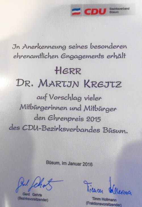 Wir sind Dir für Deinen hervorragenden ehrenamtlichen Einsatz für unser Büsum dankbar!!!
